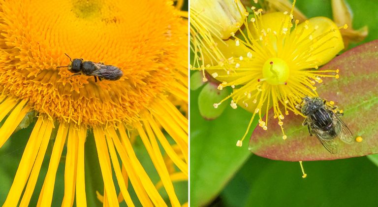 Foto’s: Tronkenbij en Weidevlekoog – Edda Kammenga; Kraamwebspin – © Frans Kromme