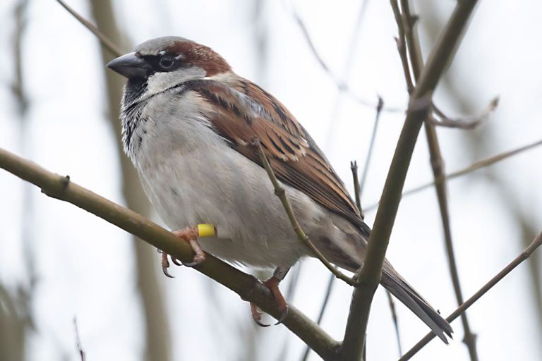 “Mensen in Beijum en Zuidwolde die mussen in de tuin voeren, verzoeken we om met de verrekijker af en toe na te gaan of er ook gekleurringde vogels tussen zitten”.