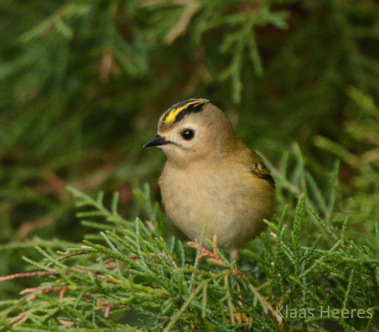Een van de naaldbomen daar is bezet door zijn neef, de Vuurgoudhaan. Geniet, hoor en zie!