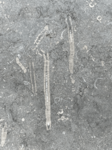 In gevelstenen, muren en stoeptegels zijn vaak heel mooie fossielen te vinden. Overal waar natuursteen is gebruikt dat uit afzettingen is ontstaan, kun je deze overblijfselen van dieren of planten vinden. In de binnenstad van Groningen gaan we op zoek naar deze zogenaamde ‘stadsfossielen’. We treffen die onder andere aan in het Forum, het gemeentehuis en op stoeptegels rond de Grote Markt.