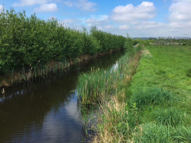 Het Archeologisch wandelpark ‘De Vork’ ligt vlak naast het opstelterrein voor treinen in Haren. Het is een groene plek met vlonderpaden, bomen, struiken en een kikkerpoel.