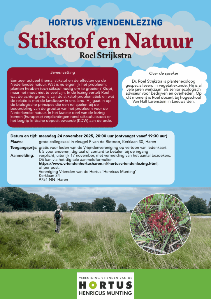Op maandag 24 november 2025 organiseert de Vereniging Vrienden van de Hortus ‘Henricus Munting’ haar jaarlijkse Hortus Vriendenlezing.
