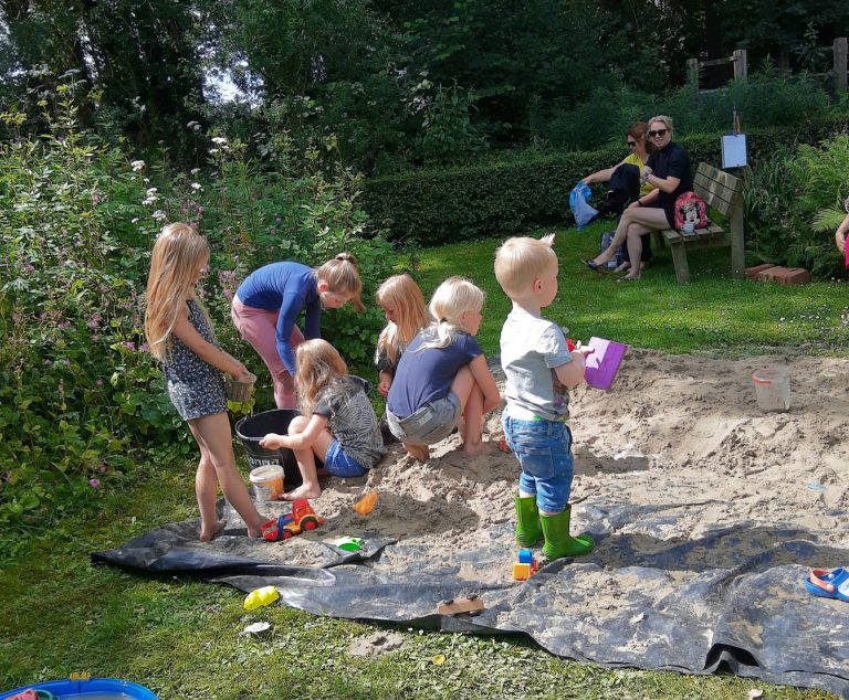 Dat deden de kinderen volop. Er werd water met zand gemengd, zandkastelen ontworpen, natte drek gemaakt en vooral…. Kinderen die helemaal vol modder zaten.