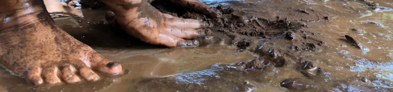 Om 9.30 uur stonden Monique, Ingrid, Femie, Hermien en Jan paraat om de kinderen te verwelkomen in de modderige speeltuin. Ingrid had er duidelijk zin in, want ze had alvast een flinke plas gecreëerd door wat emmers water over de zandbult te kieperen. De vrolijke varkentjes lagen al heerlijk te badderen, klaar om opnieuw gewassen te worden of juist weer lekker vies te worden gemaakt. Ingrid zong een aanstekelijk liedje over het varkentje, en bij de woorden “bad en nat” kwam de herkenning bij de kinderen, waarna ze het liedje opnieuw wilden horen.