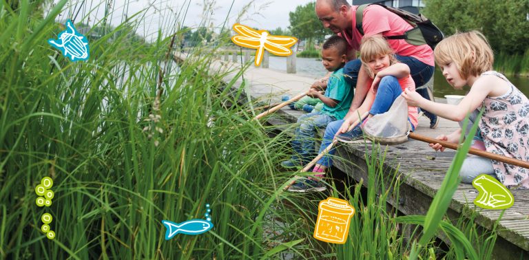 We hadden een tent waar de ouders en kinderen zich konden melden en daar werd ook gevraagd of Sternet hen mocht filmen of fotograferen. Daarna kreeg elk kind een rugzak met alles wat je nodig hebt om te schepnetvissen met een schepnet. Doordat we met drie gidsen waren hadden we het zo ingedeeld dat Anne de mensen ontving. Bram ging ons even helpen met uitdelen van schepnetten en rugzakken, dat was Super. Ben en Hermien gingen bij het water voordoen hoe ze konden vissen met het schepnet en beestjes opzoeken op de kaart. Later konden we alle drie om en om bij de vangst kijken.