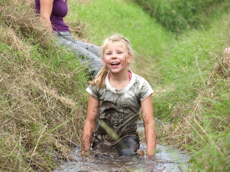Je zag een meisje genietend in de modder lopen met gelakte teentjes!