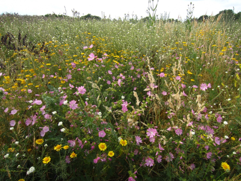 Niet te missen zijn voorts de zachtroze bloemen van het Muskuskaasjeskruid (Malva moschata).
