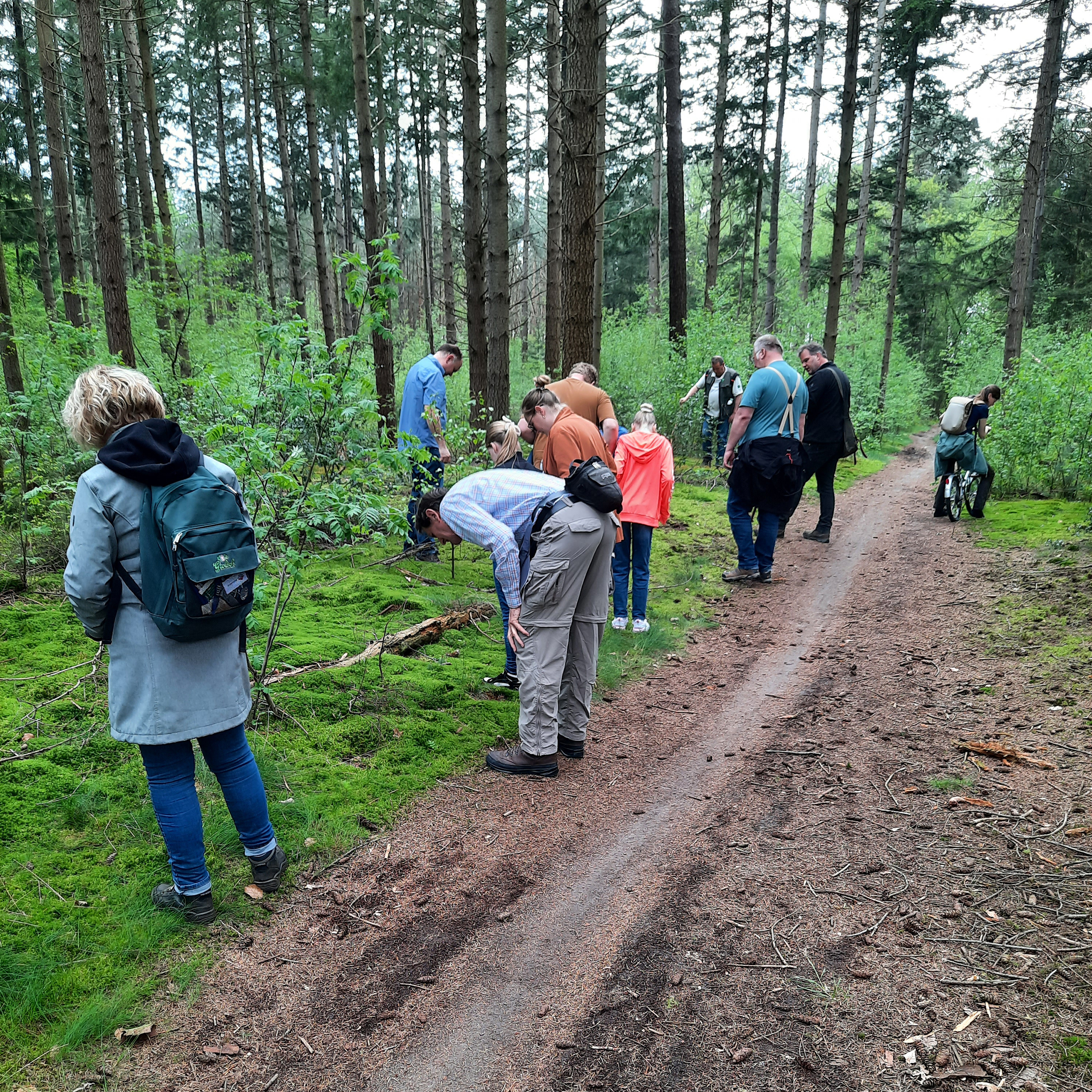 Zaterdag 6 mei 2023 was er de eerste excursie van de nieuwe werkgroep Diersporen o.l.v de landelijk bekende expert Michel Grobbe. Vanaf Camping de Klashorst liepen wij het bos in, ook in delen waar normaal de toegang beperkt is. Daarom was er ook een samenwerking met boswachter Nico Arkes. Nico kon uiteraard ook aanvullende info geven over speciale plaatsen waar aanwezige fauna sporen achter laat, d.w.z. o.a prenten, poep, knaagsporen. Michel liet ons luisteren naar rust en onrust in het bos, hoe zie je het onderscheid tussen een lig- en veegplek van een Ree. Hoe kun je zien wat een looproute is van o.a een Ree. Zelfs de knaagsporen van een Bever werden gevonden. Deze excursie werd ook bijgewoond door cursisten van de opleiding Vechtdalgidsen.