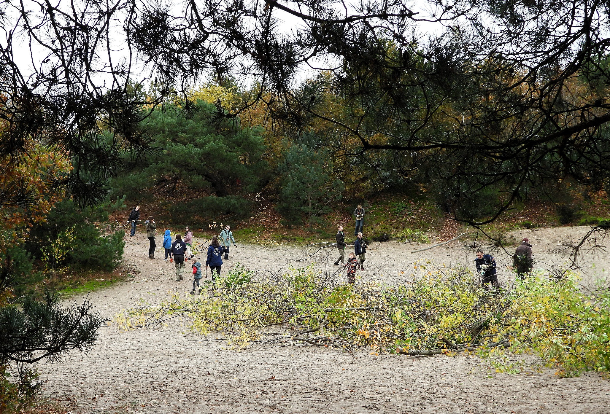 Jaarlijks organiseert Staatsbosbeheer in samenwerking met Stanley Groep Hardenberg (scouting) en de werkgroep Landschapsonderhoud van de IVN Hardenberg-Gramsbergen voor de jeugd een natuurwerkdag. Dit jaar vond het plaats op zaterdag 1 november op en nabij de zandverstuiving van de Rheezerbelten aan de Beltenweg. Boswachter Nico Arkes gaf uitgebreid uitleg en instructie aan de deelnemers. Doel van de dag was het snoeien van invasieve boomsoorten. Om overheersing van die soorten te voorkomen en het karakteristieke landschap te behouden is dit noodzakelijk. Gewapend met knipschaar of een zaag ging de jeugd de uitdaging aan. Iedere groep werd begeleid en van instructies voorzien door de leiding van de scouting en de mannen van de werkgroep Landschapsonderhoud. In een mum van tijd ontstond er al een grote bult met snoeiafval, gevolg van het enthousiaste zagen en knippen. Helaas begon het te regenen, maar er wachtten soep, broodjes en pannenkoeken op de harde werkers. Daar werd gretig gebruik van gemaakt, waarna gezamenlijk alles werd opgeruimd. Voldaan en een ervaring rijker toog iedereen huiswaarts. “Volgend jaar weer!” klonk het enthousiast uit hun kelen. En dat gaat zeker gebeuren.