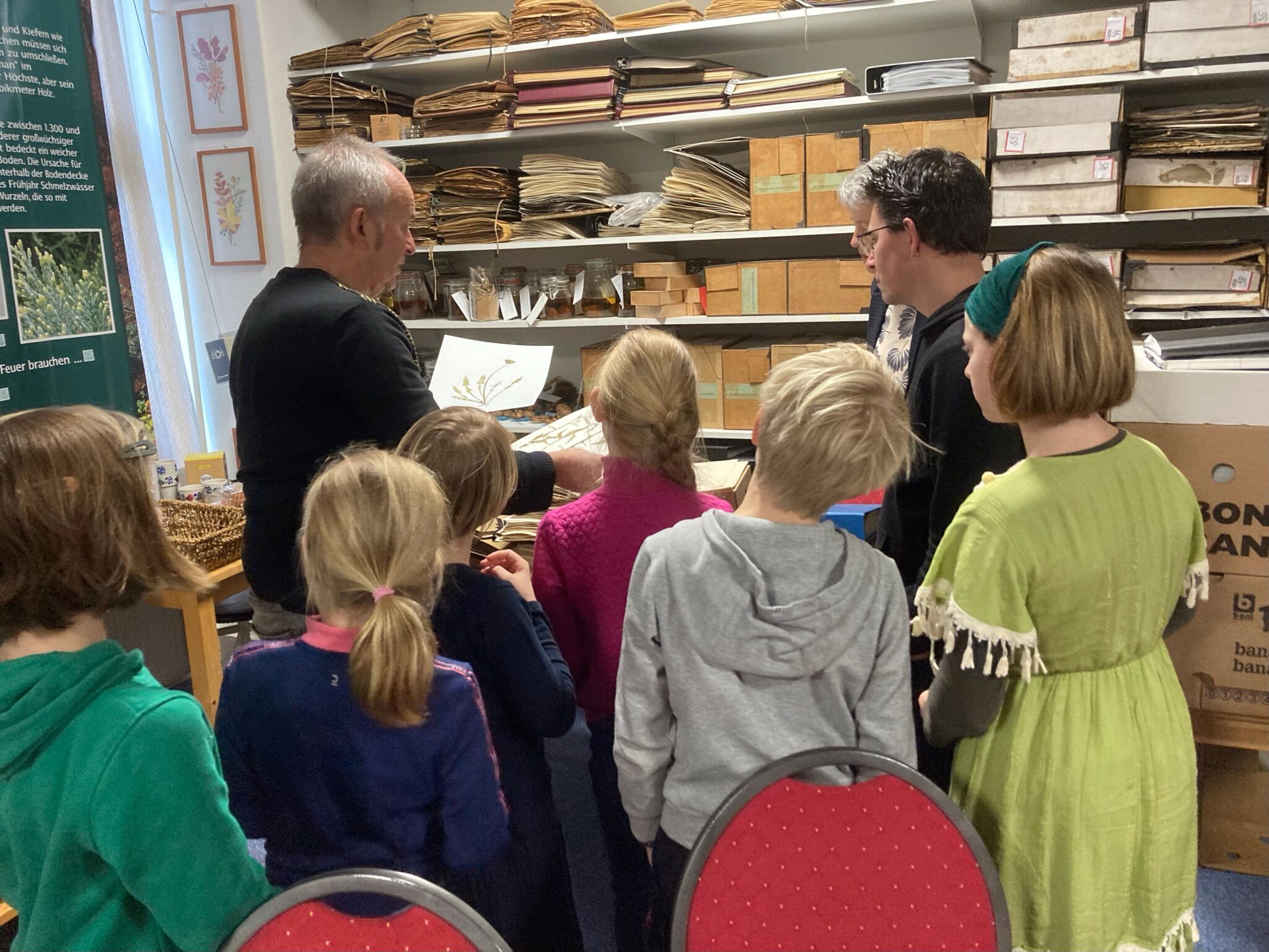 Karst Meijer gaf een inspirerende rondleiding. De kinderen mochten een wel hele bijzondere aanwinst van het Herbarium bekijken. De Species Plantarum van C. Linnai, uit 1753. De basis van de botanische nomenclatuur; een nieuw systeem voor het benoemen en rangschikken van organismen. Hij benoemde tijdens zijn leven zo’n 9000 soorten planten.