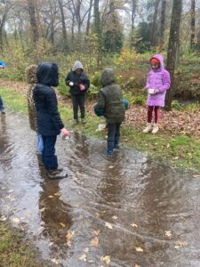 In de stromende regen vroeg een nieuwsgierig jongetje mij: “Hoe hard moet het eigenlijk regenen voordat een buitenles niet doorgaat?” Ik moest lachen om deze leuke vraag en antwoordde: “Nou, zolang het niet hard waait of onweert, kan er veel.”