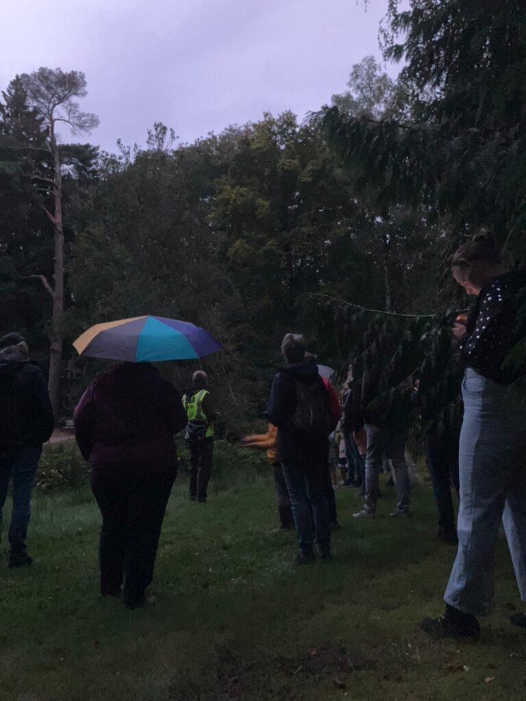 De belangstelling voor de excursie was groot. Ondanks de regen op het moment dat de vleermuizen normaal gesproken uitvliegen, wist de groep toch enkele dwergvleermuizen te spotten en te beluisteren.