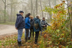 De bomencursus van IVN Heeze-Leende, die onder de titel “Van wortel tot tak” in 2024 plaatsvond, is op 3 november afgesloten met een excursie bij Kapellerput. De cursus behandelde bomen in 4 seizoenen. In 4 lessen en 4 excursies werd de ontwikkeling van een boom door de jaargetijden heen gevolgd. De wandeling bij Kapellerput was de afsluiting met “bomen in herfsttooi”. Ondanks het mistige weer hebben de cursisten goed kunnen zien wat er in de herfst met de bomen gebeurt. Het gevallen blad zit onder de gallen en gangen van bladmineerders. De bever vindt in de herfst minder planten om te eten en gaat meer aan boomstammen knagen. De paddenstoelen profiteren van de regen en de bladval en doen zich tegoed aan het dode materiaal dat overal wordt aangevuld. De parasitaire soorten, zoals grote hoeveelheden honingzwammen, plegen een aanslag op de bomen die door de aanhoudende nattigheid verzwakt zijn geraakt. Aan de loop van de Sterkselse Aa is te zien dat de oevers dit hele jaar flink zijn