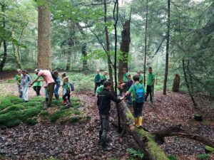 Peter vertelde de Jeugd IVN-ers over bushcraft en wat het verschil is met survival. Bushcraft draait om het vervaardigen of het maken van dingen die je kan gebruiken om te leven in de natuur. Zelf had Peter allerlei materiaal bij zich dat de kinderen konden voelen en bekijken, waaronder de tonderzwam, vuursteen, botten en geweien. Maar ook verschillende plantjes en hout.