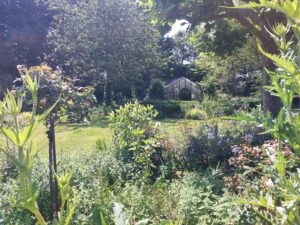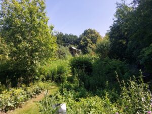 In Schandelo pauzeren we voor een IVN lunch (broodjes, soep en drank). Daar bezoeken we ook de ecologische tuin van Regine van Bergen.