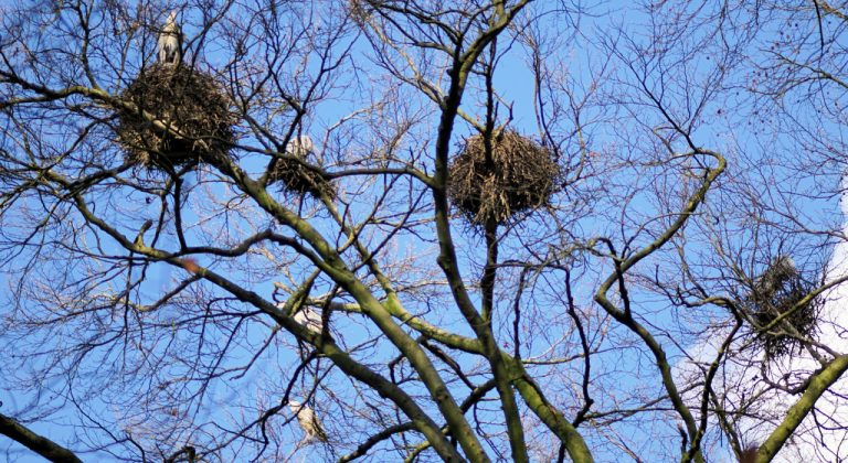 We zitten op de overgang van winter naar voorjaar. De eerste tekenen van de naderende lente zijn overal zichtbaar en hoorbaar. Zo zijn de reigers in de kolonie in de Warande al volop bezig hun nesten op orde te brengen. En dat is nu door de kale boomkronen goed te zien. Verschillende vogels zoals roodborst en koolmees sloven zich luidkeels uit om hun territorium af te bakenen en om een vrouwtje te lokken.