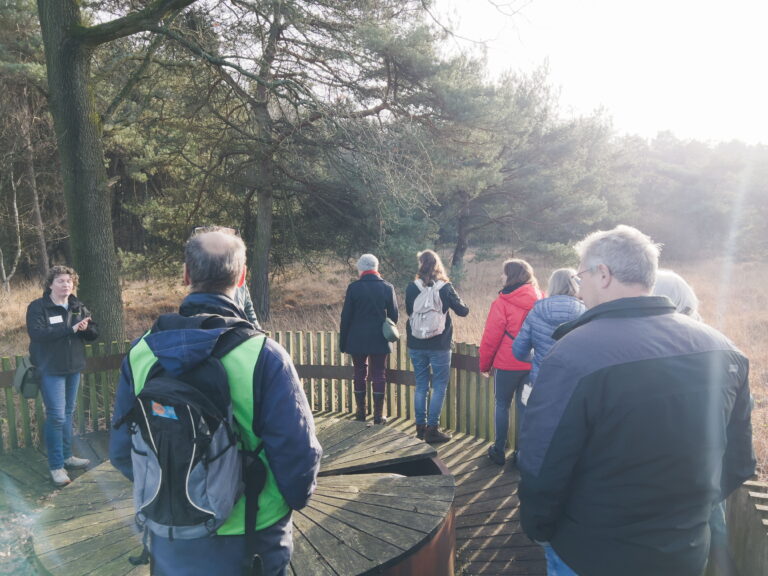 Tijdens de wandeling door het afwisselende landschap van heide, bos, open velden en parklandschap werd duidelijk dat de natuur in de winter weliswaar rustig oogt, maar niet stil staat. Op verschillende plekken legden de gidsen uit hoe planten en dieren de koude maanden doorkomen. Zo kwamen we onder andere langs een natuurbalkon, een laan met eiken waar van alles over te vertellen was, een aantal erven van Twickel en het Kreeftengat.
