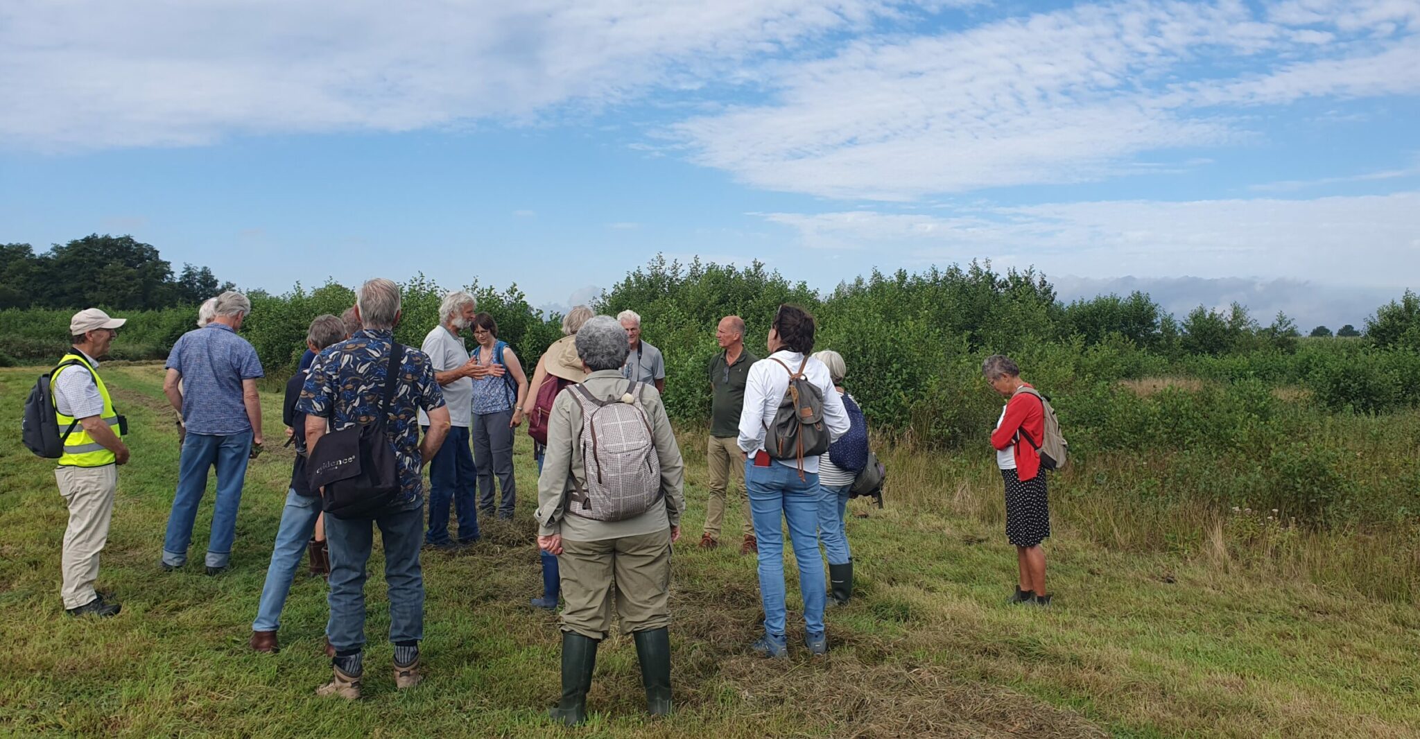 Op zaterdag 7 september was ons jaarlijkse uitje voor actieve leden. Zoals altijd bezoeken we een andere afdeling, deze keer waren we te gast bij IVN Vecht en Plassengebied. In boerderij Vredegoed kregen we een leuke presentatie van Kees Goossen van deze IVN afdeling en vervolgens gingen we op pad met Bert van Tol. Hij woont in deze prachtige boerderij waar sinds 2010 het streekmuseum in huist. Bert is schapenboer en is zo’n acht jaar geleden gestart met natuurontwikkeling van enkele van zijn weilanden. Hij nam ons ’s morgens mee in zijn verhalen terwijl we door het gebied wandelden. We hebben genoten van zijn kennis en enthousiasme én verwonderd gekeken naar het gebied in ontwikkeling, met zonnedauw als een hoogtepunt. ’s Middags hebben we gewandeld in het veengebied en geleerd over het ontstaan van dit gebied.