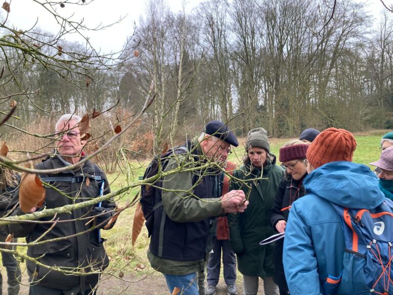 Tijdens de minicursus Winterherkenning van bomen en struiken, gaf IVN-gids René de deelnemers handvaten voor het identificeren van de verschillende soorten in de winter. Hij werd geassisteerd door Geri in het kader van haar stage voor de Natuurgidsenopleiding (NGO) van het IVN.