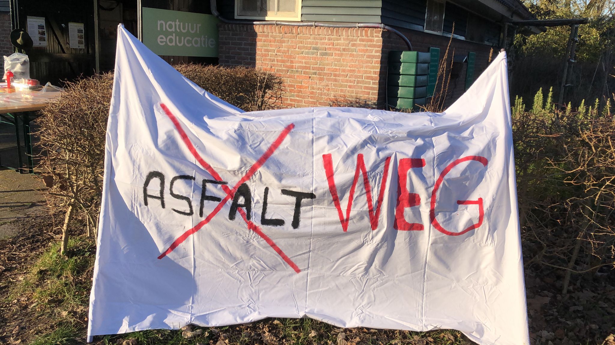 Het bospad is nu vervangen, een stuk van de bodem is afgegraven en een centimeters dikke laag asfaltpuin is aangebracht.