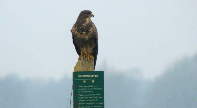 Wilde zwanen in de Boerenveensche Plassen en een buizerd in de Oude Kene.