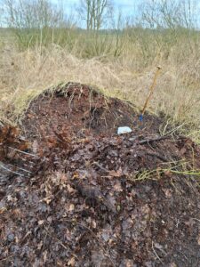 Ruim 30 vrijwilligers kwamen opdraven voor jaarlijkse activiteit in de Oude Kene. Jong en oud komt erop af in de hoop om in de oude broeihoop de lege eischalen van de ringslang te vinden. Het is de bedoeling om naast de bestaande broeihoop een nieuwe aan te leggen. Beginnen met wat takken en dan het oude, plus wat nieuw blad toevoegen. Eigenlijk gebruiken we de oude broeihoop opnieuw, al is er in een jaar tijd ook aardig wat organisch materiaal verdwenen. En dat is mooi. Als snel worden in de broeihopen en lege eischalen gevonden. Niet iedereen heeft geluk dus wordt er hard doorgewerkt om dan nog een broeihoop om te zetten, hopend op meer geluk. Om half 11 staat de koffie en thee klaar, met voor de liefhebbers ook koek en een krentenbol! Dat laat iedereen zich goed smaken.