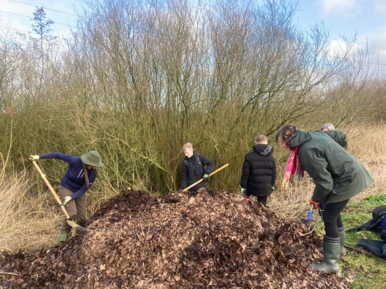 Ruim 30 vrijwilligers kwamen opdraven voor jaarlijkse activiteit in de Oude Kene. Jong en oud komt erop af in de hoop om in de oude broeihoop de lege eischalen van de ringslang te vinden. Het is de bedoeling om naast de bestaande broeihoop een nieuwe aan te leggen. Beginnen met wat takken en dan het oude, plus wat nieuw blad toevoegen. Eigenlijk gebruiken we de oude broeihoop opnieuw, al is er in een jaar tijd ook aardig wat organisch materiaal verdwenen. En dat is mooi. Als snel worden in de broeihopen en lege eischalen gevonden. Niet iedereen heeft geluk dus wordt er hard doorgewerkt om dan nog een broeihoop om te zetten, hopend op meer geluk. Om half 11 staat de koffie en thee klaar, met voor de liefhebbers ook koek en een krentenbol! Dat laat iedereen zich goed smaken.