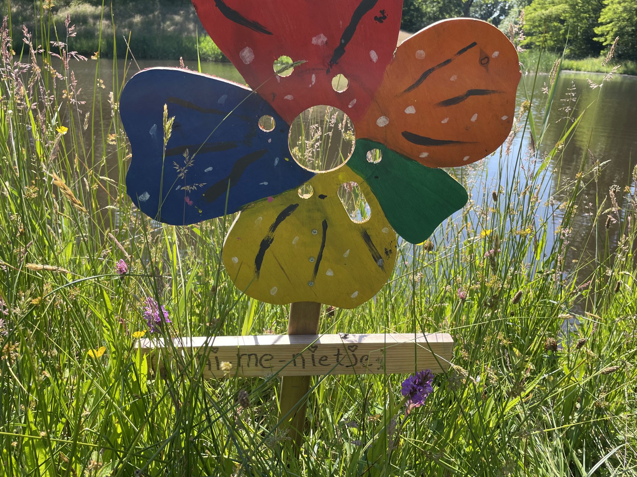 Laat dat laatste nu net niet de bedoeling zijn. Maai mei niet is de roep voor de natuur, ‘Maai mei niet’, want er groeit, bloeit en leeft iets. Brunel bijvoorbeeld, deze wordt niet voor niets ‘bijenkorfje’ genoemd. Bijtjes smullen ervan. Er leeft heel wat kriebelspul in en tussen het gras. Zo groeit er bijvoorbeeld een pinksterbloem. Dat is de waardplant van het oranjetipje, dat prachtige voorjaars vlindertje. Als je die ziet fladderen dan is de lente echt begonnen. Maar ‘Maai mei niet’ kun je ook anders vertalen, ‘Maai mij niet’. Die borden hebben we een paar jaar geleden gemaakt tijdens een NL Doet en we zetten ze veel te weinig in. Daar mag best verandering in komen. Zodra we in het Steenbergerpark de orchidee weer vinden, zetten we er een ‘Maai mij Niet’ bordje bij. Maar er zijn veel meer plekjes in Hoogeveen waar het bordje niet zou misstaan. Verhoging van de biodiversiteit, dat is wat we willen. Glad gemaaide gazons in tuinen, parken en bermen, bij IVN houden we daar niet zo van. Het mag allemaal wel een beetje meer kleur krijgen, je zult zien dat bijtjes, hommels en vlinders erop afkomen. Dankzij bijen ziet de wereld er kleurrijk uit. Bijen zijn namelijk belangrijk voor de bestuiving van bloemen. Bijen eten geen gras, dat is de boodschap en iedereen heeft inmiddels wel in de gaten dat door menselijk handelen de bijen het moeilijk hebben.
