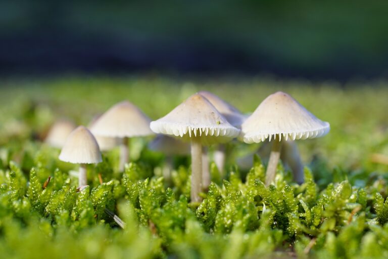 Paddenstoelen in beeldentuin van Gees
