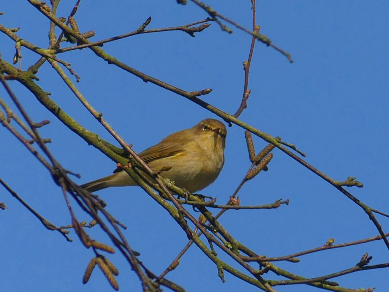 Tjiftjafs zijn ook in het Steenbergerpark gearriveerd. Bij ’t Struunhuus een zingende en in bomen langs het kanaal 2 foeragerende. Er vlogen 5 citroenvlinders, 1 dagpauwoog. Op het talud 2 foeragerende zanglijsters en 2 heggenmussen. In een populier 1 appelvink en in een uitbottende krentenboom 2 knoppenetende goudvinken.