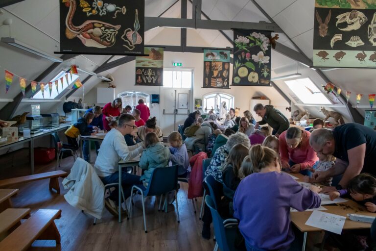 Een drukbezochte activiteit was het op 16 maart 2025 bij kinderboerderij de Goudse Hofsteden. Op zolder waren veel kinderen met ouder/begeleider druk bezig om te kijken wat er in de diverse uilenballen te vinden was. Gelukkig hebben we de foto’s nog!