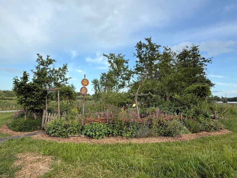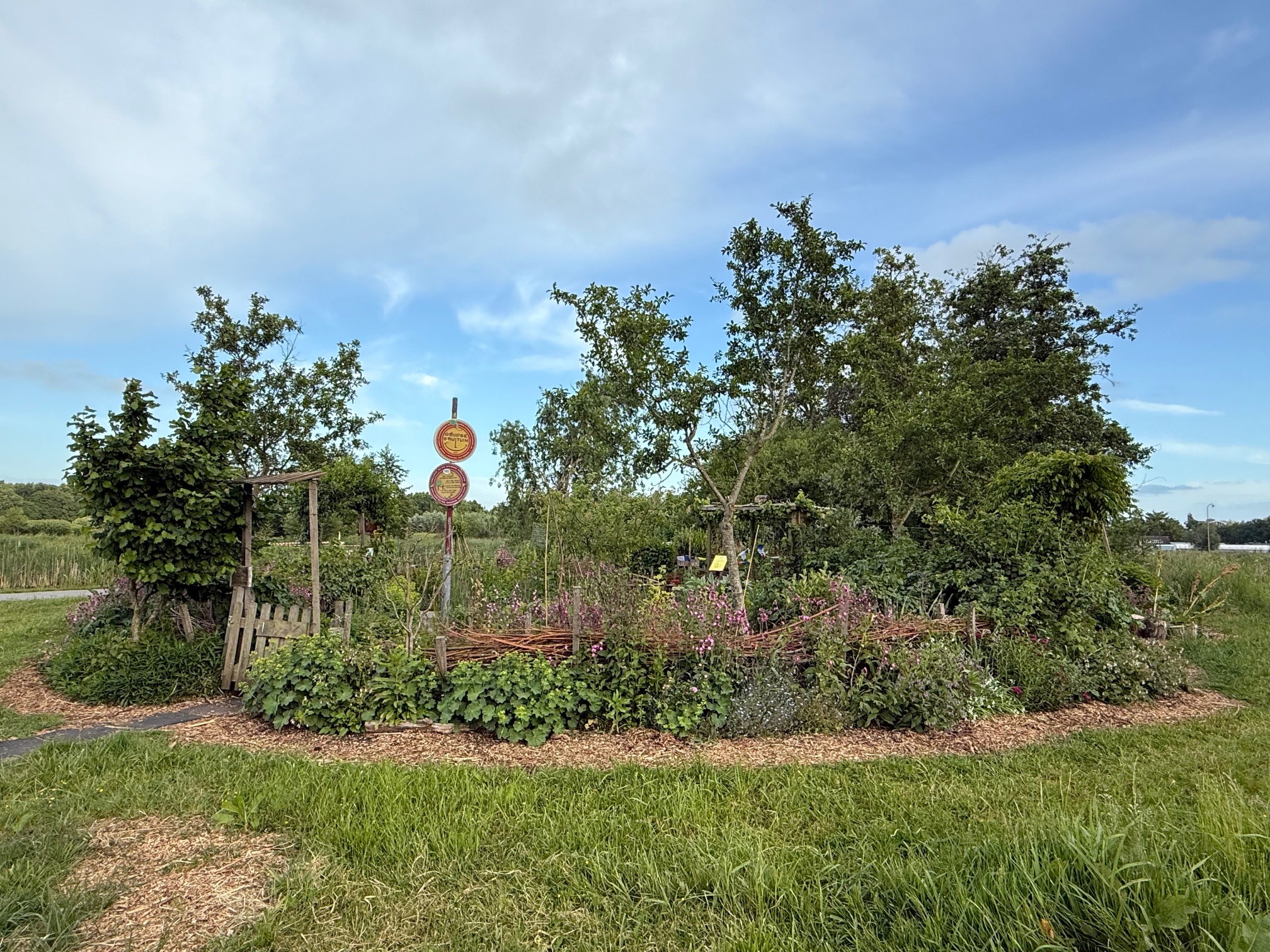 Binnen de omheining staan enkel eetbare planten zoals verschillende soorten bessen, frambozen en aardbeien. De jostabessen, een kruising tussen de zwarte bes en de kruisbes, zijn rijp in juni en zijn zo ontzettend lekker!