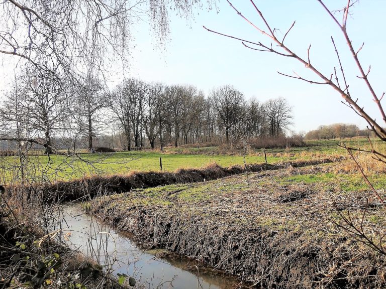 Vanaf deze hooggelegen akkers daal je af naar het laaggelegen land langs de Schevelingse Loop. Eerst kom je door een bos van oude wilgen en eiken, daarna bereik je een groot proefveld van lisdodden. Daar wordt onderzoek gedaan door het waterschap en de agrarische school naar de biodiversiteit. Hier en daar zijn de oevers afgevlakt als drinkplaats voor dieren en zijn poelen aangelegd. Dit gebied is een pareltje in het landschap, waar veel waterdieren vóórkomen en waar de ijsvogel zich thuis voelt. Uiteraard hebben we ook oog voor de flora en fauna. Kortom, het is alleszins de moeite waard om mee op pad te gaan. Stevige waterdichte schoenen of laarzen zijn meestal geen overbodige luxe. Een prettige wandeling!