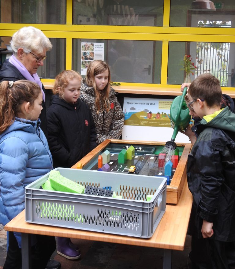 - Bij de watertafel leer je alles over verstening, over wateroverlast en over vergroening. Hoe kunnen bewoners van dorpen en steden zorgen voor een veilige omgeving als het klimaat zo verandert?