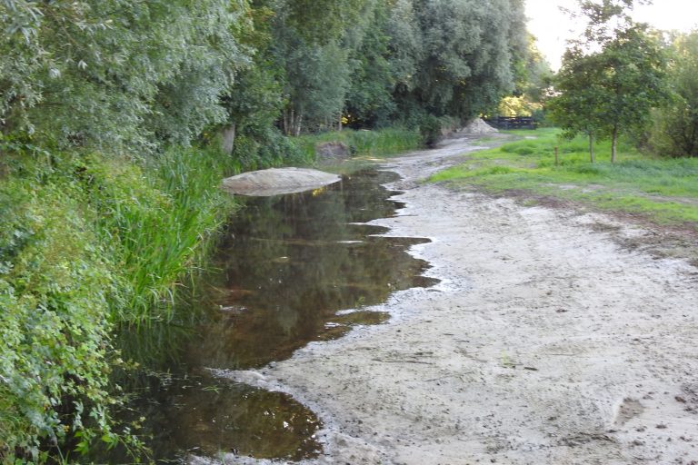 Coördinator van de natuurtuin is Gerrit Post. Hij geeft uitleg over de verschillende nieuwe landschapselementen. Eén van de projecten betreft de beek Koude Maas. Om de biodiversiteit van de oever te vergroten is die over een deel afgevlakt. Aangrenzend is een 6 meter brede botanische hooilandrand aangebracht. Dat is kruidenrijk grasland.