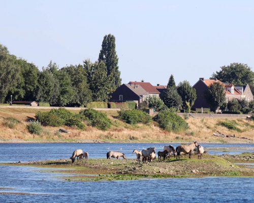 Zondag 20 juli wandelen we een makkelijk rondje Itteren van 7 km langs de Maas en door het open Maasland waar runderen en koninckspaarden grazen.
