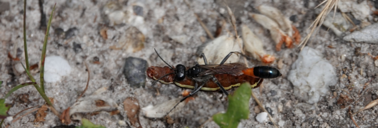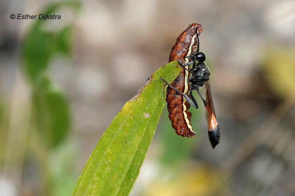De grote rupsendoder Ammophila sabulosa komt algemeen voor in Nederland. Het is een graafwesp en dus graven ze hun nest in de bodem, in zanderige grond. De grote rupsendoder pakt rupsen die veel zwaarder zijn dan zij zelf is, tot wel tien keer het eigen lichaamsgewicht! En dat voor een beestje dat zo fragiel oogt dat haar wespentaille bij een klein tikje al in tweeën kan breken. Deze wesp wordt 1,5 tot 2,5 cm lang.