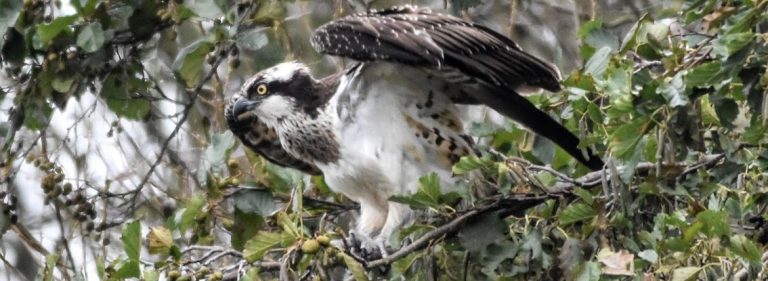 Ongeveer twee weken geleden, eind oktober, liep ik op weg naar de supermarkt, het bos bij de grafheuvel uit en ging verder op de betonweg toen er opeens bij de duiker in de weg, een grote, witachtige roofvogel laag over mij heen vloog, richting de plas bij de grafheuvel. Een buizerd was het eerste wat ik dacht, maar daar twijfelde ik ook direct aan: de staart was smaller en langer, de vleugels puntiger en de kop was anders. Bijzonder dat ik dit allemaal gezien denk te hebben want hoe lang duurde die waarneming nu helemaal, misschien zeven seconden. Maar mijn hersenen kraakten en kwamen met een andere optie, een visarend misschien? De vogel ging in een boom zitten boven het water, zag ik, nadat ik doorgelopen was. En dat maakte dat de optie “visarend” inderdaad logisch leek. Daarna verdween de vogel.