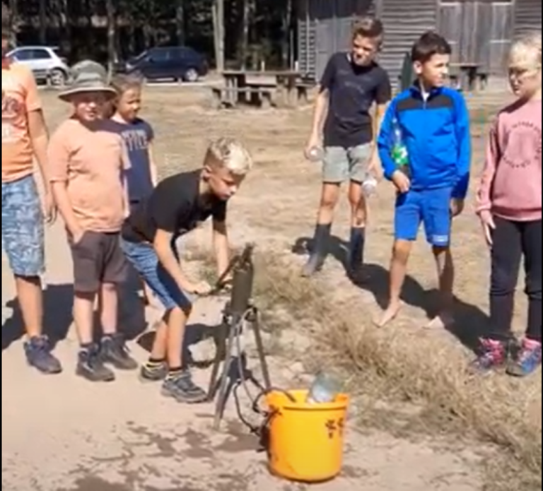 Zaterdag was het helpen in het vogelasiel te Nieuw Bergen, veren verzamelen, hokken schoonmaken en voeren. Daarna picknicken bij de speeltuin aan de Ceresweg. Daar werden petflesraketten gelanceerd. ‘s Middags waren we weer terug bij het Leger waar Rik van R-adventure het eindspel met de grote kinbal verzorgde.