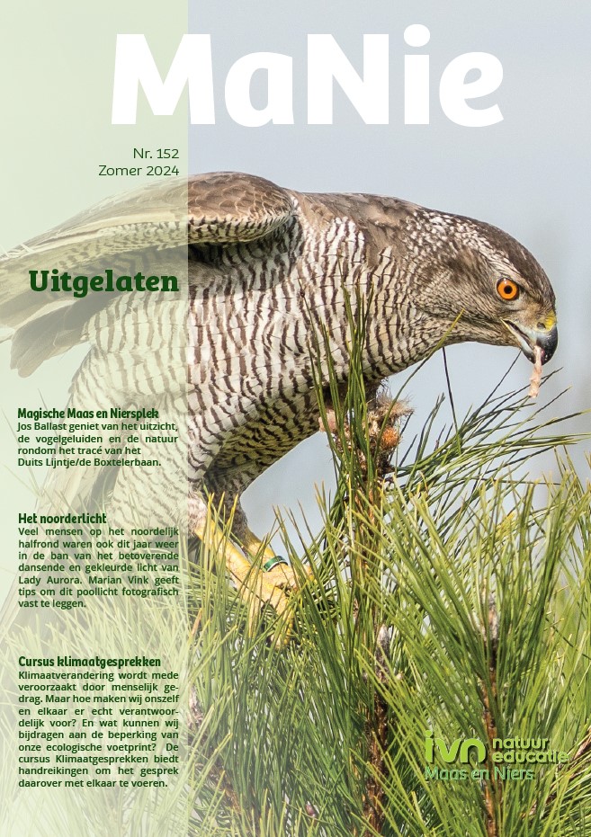 Het zomernummer van de MaNie is uit. Nummer 152, waarin het mooie, natuurrijke tracé van Duitse lijntje beschreven wordt, het verschijnsel Noorderlicht uitgelegd wordt met tips hoe het te fotograferen, over de cursus klimaatgesprekken verteld wordt en heel veel meer.