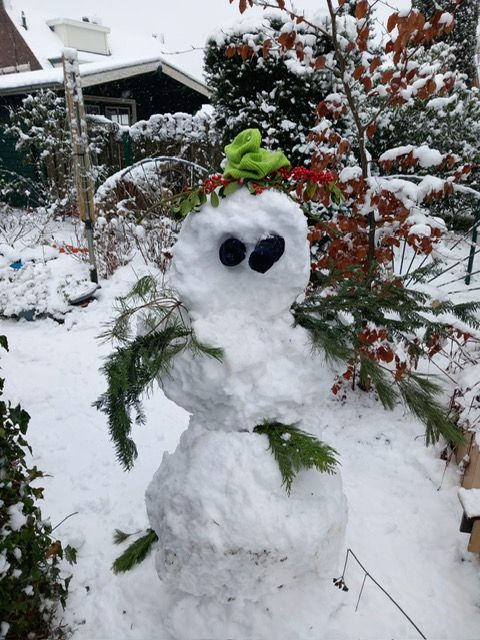 En, als de sneeuw er nog is, een wedstrijdje ‘wie maakt de mooiste, gekste, leukste sneeuwpop’.