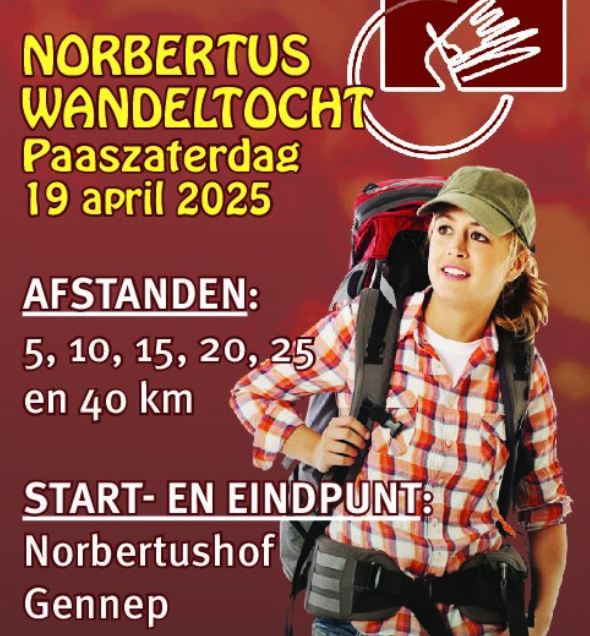 Er zijn diverse afstanden te kiezen van 5 tot 40 kilometer en diverse afstanden daartussen. Meer informatie kun je vinden op de site: www.vriendenvannorbertus.nl/wandeltocht.