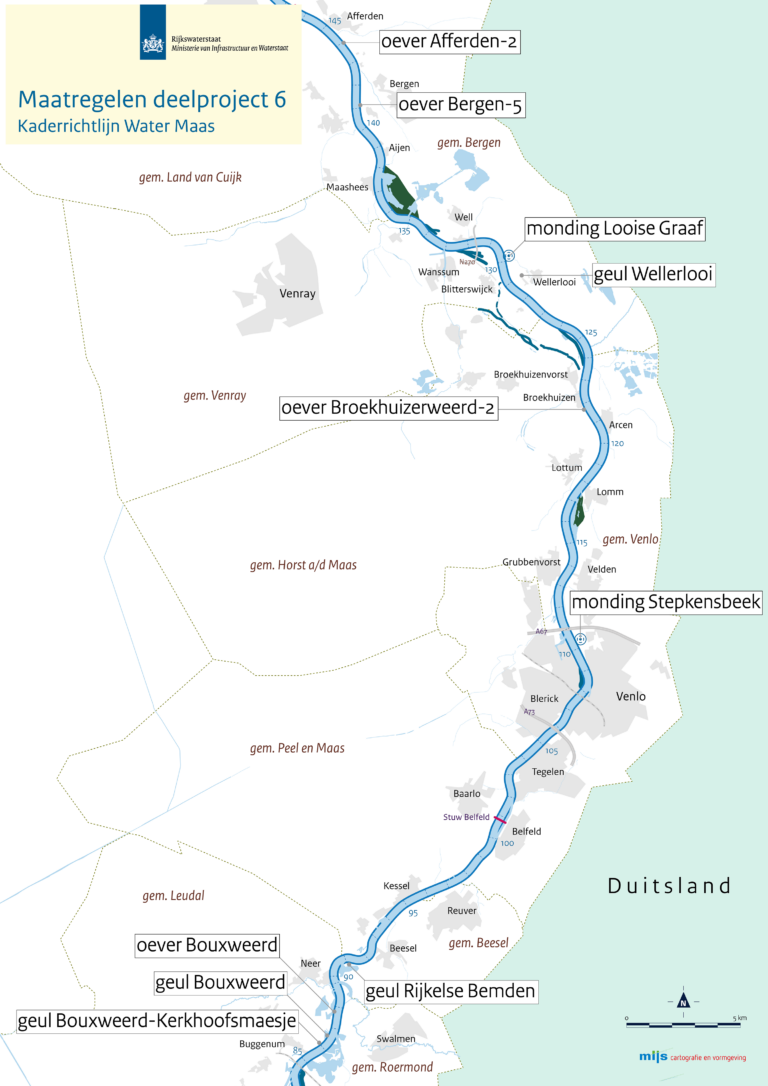 Het gaat hierbij om het zogenoemde deelproject 6 Kaderrichtlijn Water Maas. Behalve deze maatregelen, vallen daar nog vijf maatregelen in andere Maasgemeenten onder. In de Nota van Antwoord bij het definitieve plan staat hoe met de ingediende 12 zienswijzen op deelproject 6 is omgegaan.