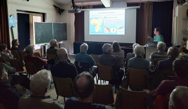 Afgelopen donderdag heeft Karin de Rijck voor een volle zaal een bijzonder boeiende lezing gegeven over zwaluwen gegeven. Haar liefde voor deze kleine vogels is al in haar vroege jeugd ontstaan tijdens haar familiebezoeken op de boerderij. In Schotland heeft ze zich al jaren geleden als vrijwilliger aangesloten bij de Huntly Swift group.