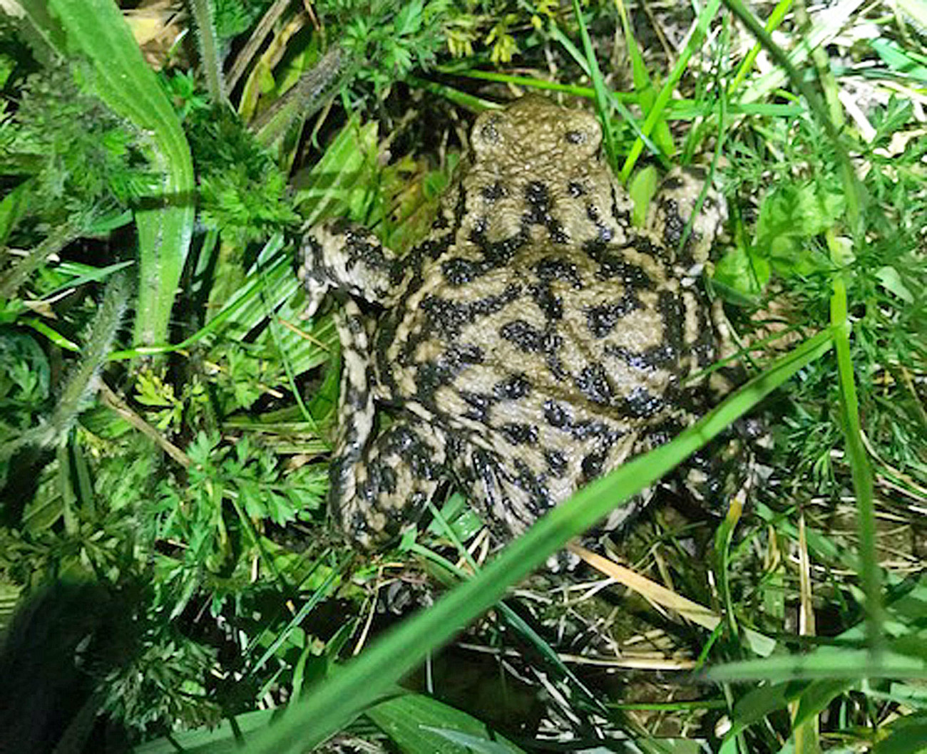 Dit is een ongewoon exemplaar dat niemand van ons eerder had gezien. Is het een knoflookpad maar de tekening doet ook denken aan een groene pad?