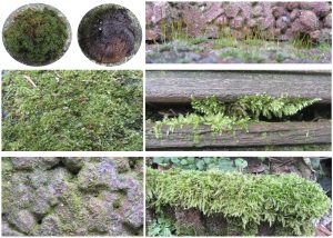 Het viel Addy op, dat door de vele regen en hoge temperaturen op veel muren en paden mossen en korstmossen goed tot ontwikkeling kwamen. Ontdek eens met een vergrootglas hoe divers en mooi gevormd deze plantjes zijn, er bestaan honderden soorten. Vanwege de bouw worden zij tot de lagere planten gerekend. Mossen hechten zich vast met wortelachtige structuren en vormen dichte kussens, waarin vaak kleine diertjes leven. Daar profiteren sommige vogels weer van. Water met voedingsstoffen worden via diffusie op het hele plantenlichaam opgenomen. Ook de opname van koolstofdioxide en afgifte van zuurstof gaat zo. Mossen verspreiden zich via sporen die droge periodes goed doorstaan.