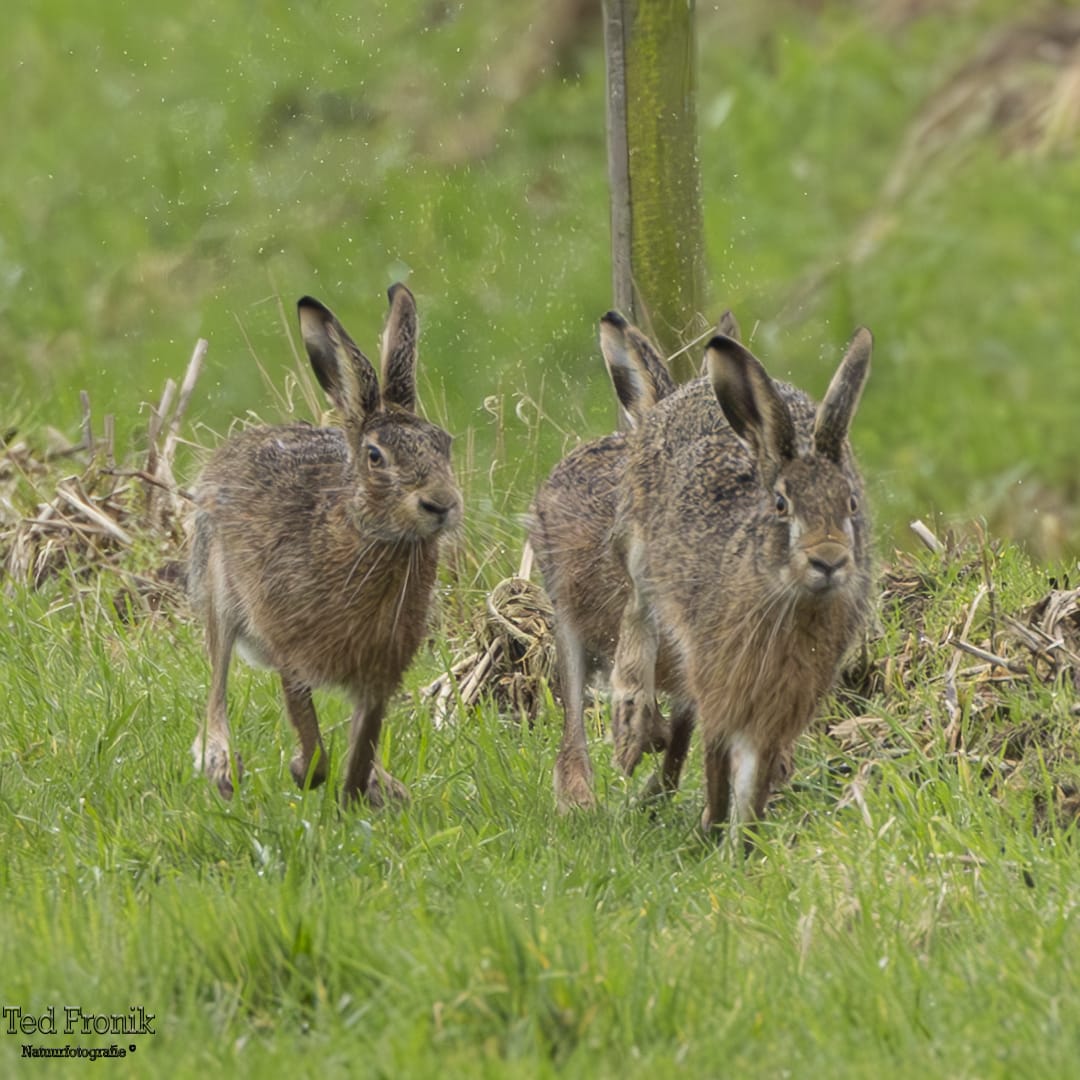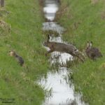 Ted Fronik ontdekte deze hazen in de buurt van de Friessestraat in Boven Leeuwen. Waren zij haasje over aan het spelen?