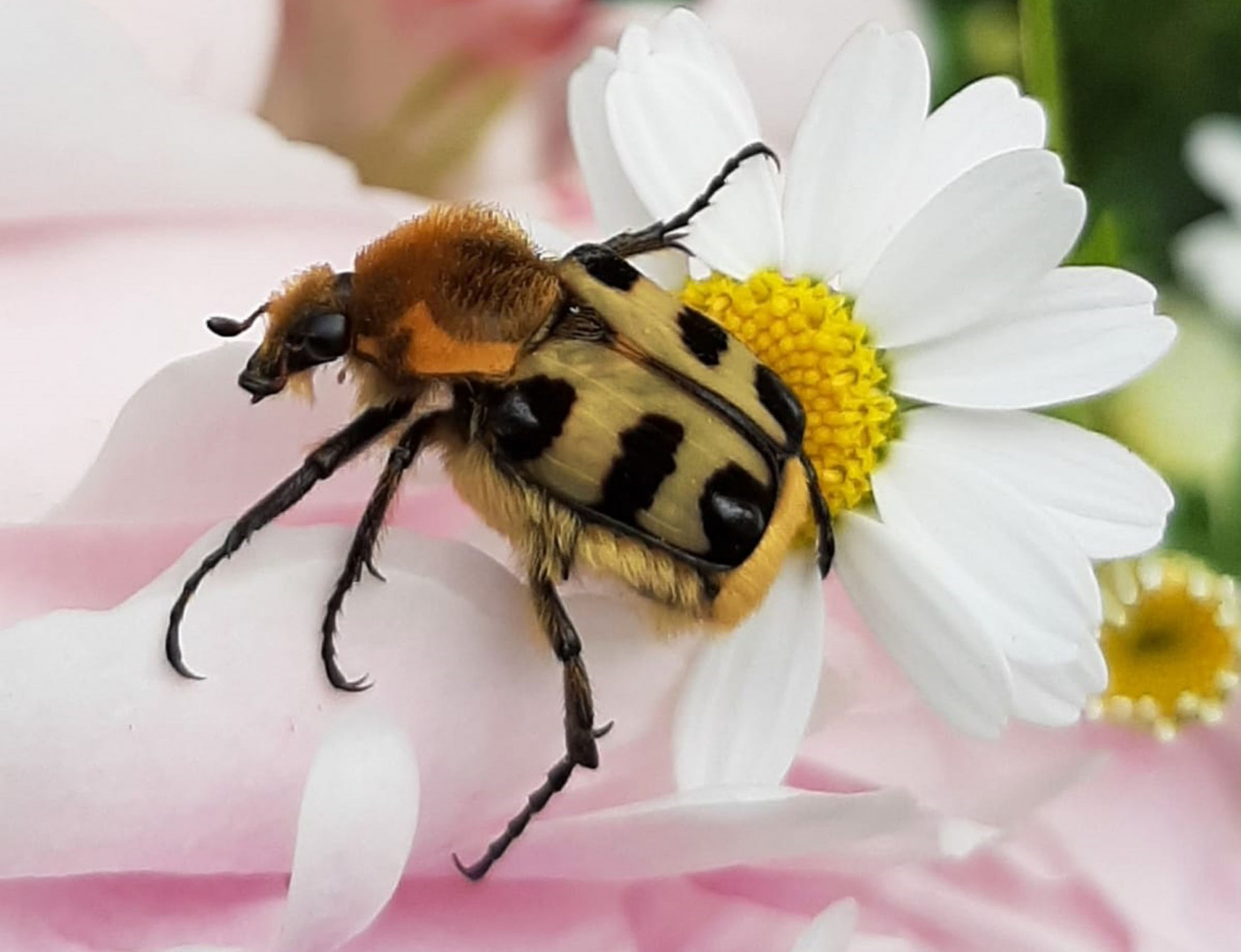 De penseelkever heeft een voorkeur voor witte bloemen en met zijn harige lijf is hij een goede bestuiver. Van juni tot augustus kun je ze vinden.