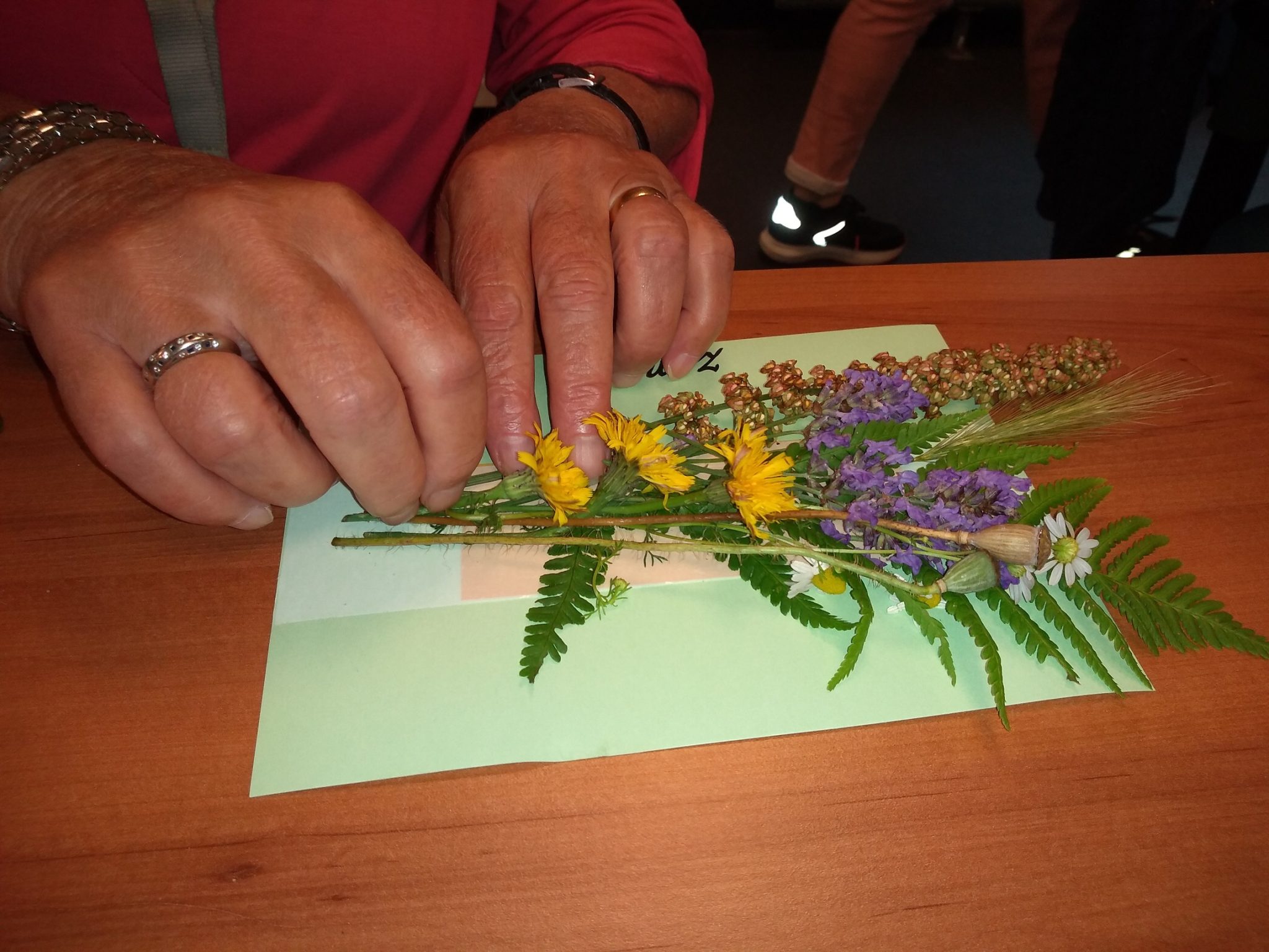 De bijeenkomst sluiten we vaak af met een eenvoudige creatieve activiteit met het meegebrachte natuurmateriaal.