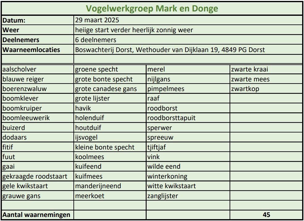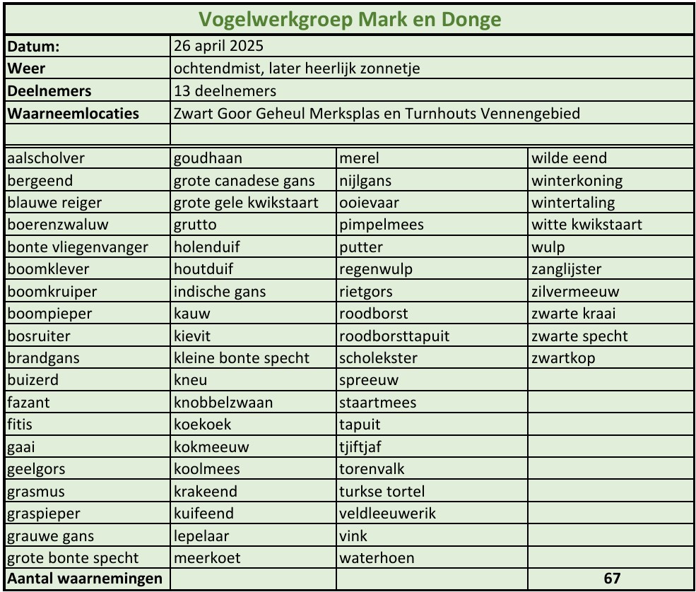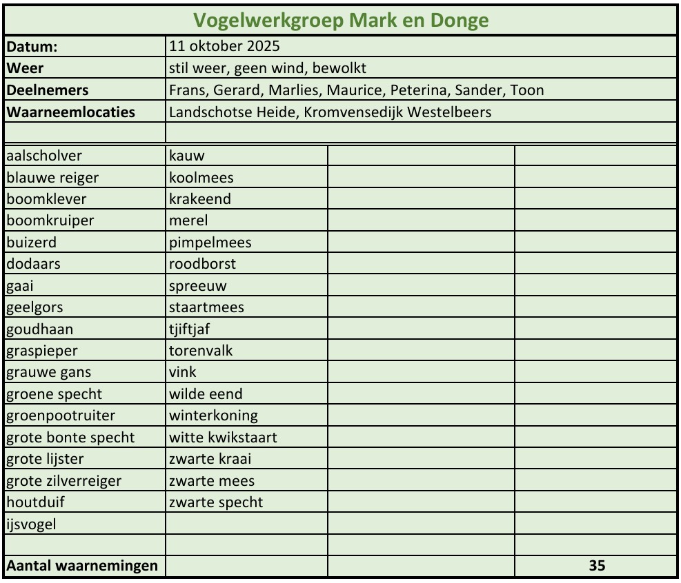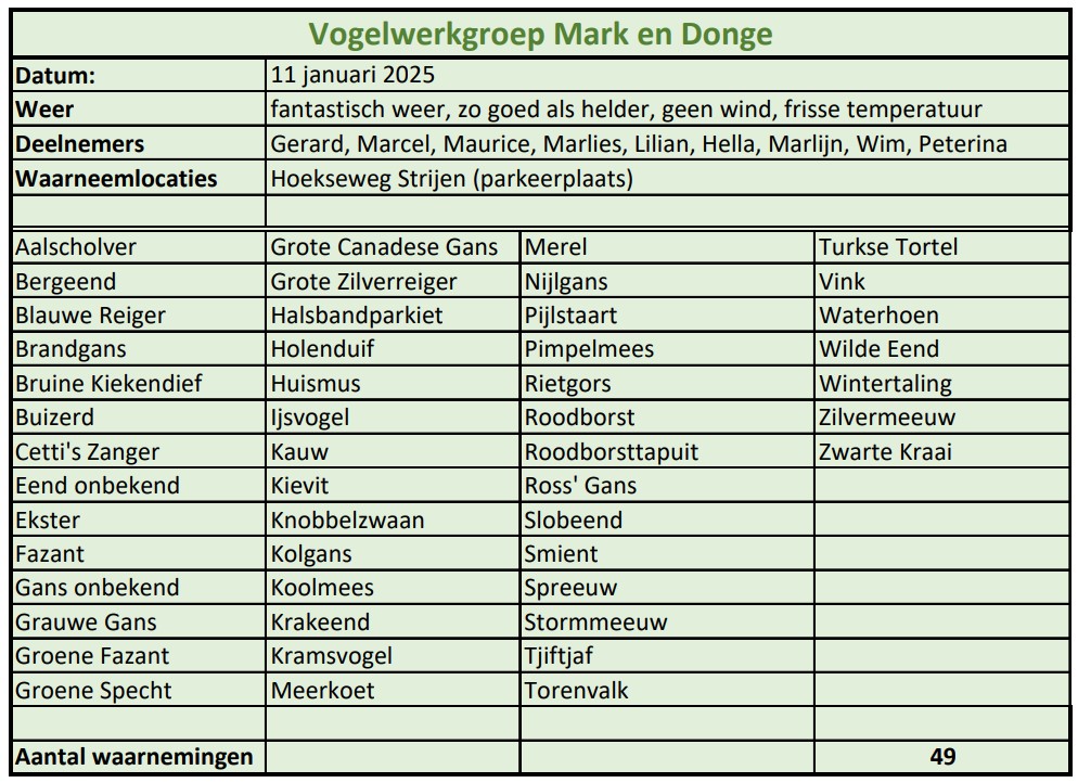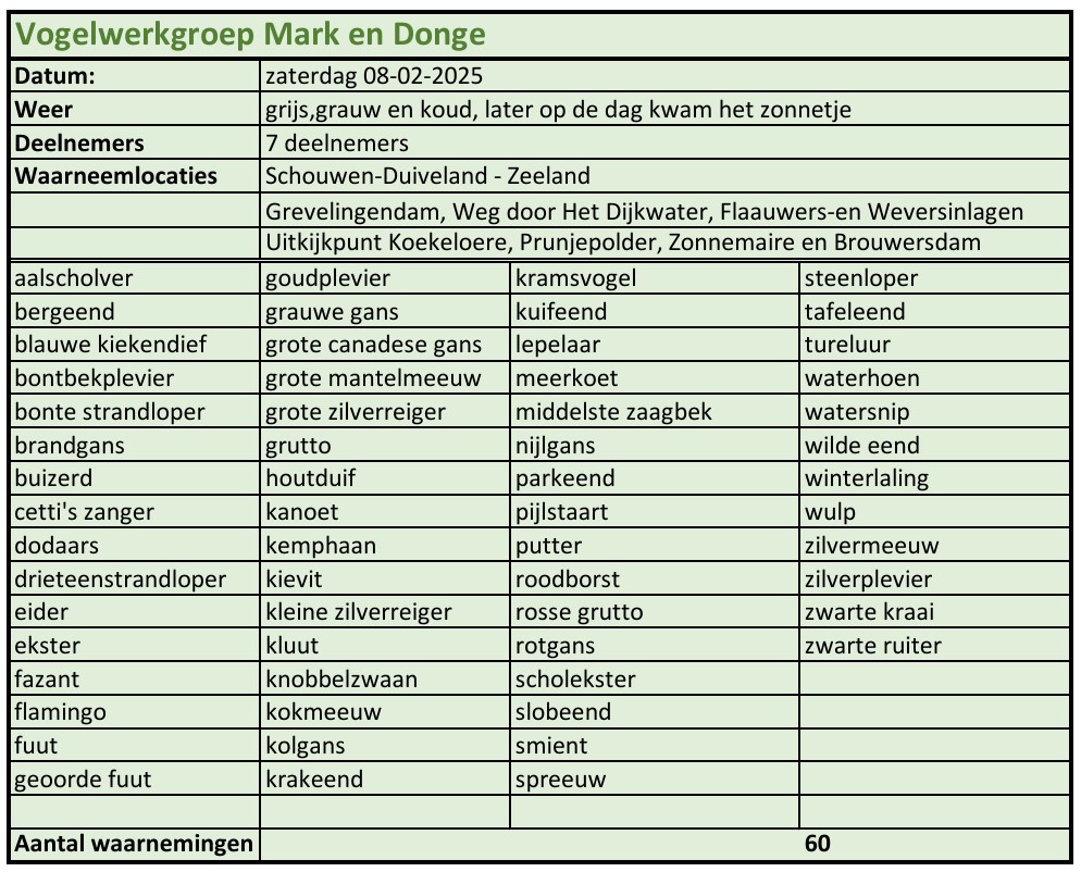 Klik hier voor de waarnemingen tijdens deze excursie.